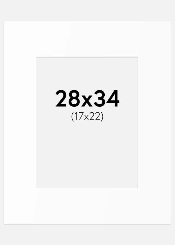 Denne elegante passepartout i hvid nuance er det perfekte valg for at fremhæve dine billeder og kunstværker. Med en indre størrelse, der passer til billeder i 18×23 cm og et ydre mål på 28×34 cm, tilbyder den en smuk indramning, der giver dine motiver den plads, de fortjener. Den skråtskårne indre kant i samme hvide farve skaber en subtil dybde og en stilfuld indramning, der virkelig fremhæver dit motiv.