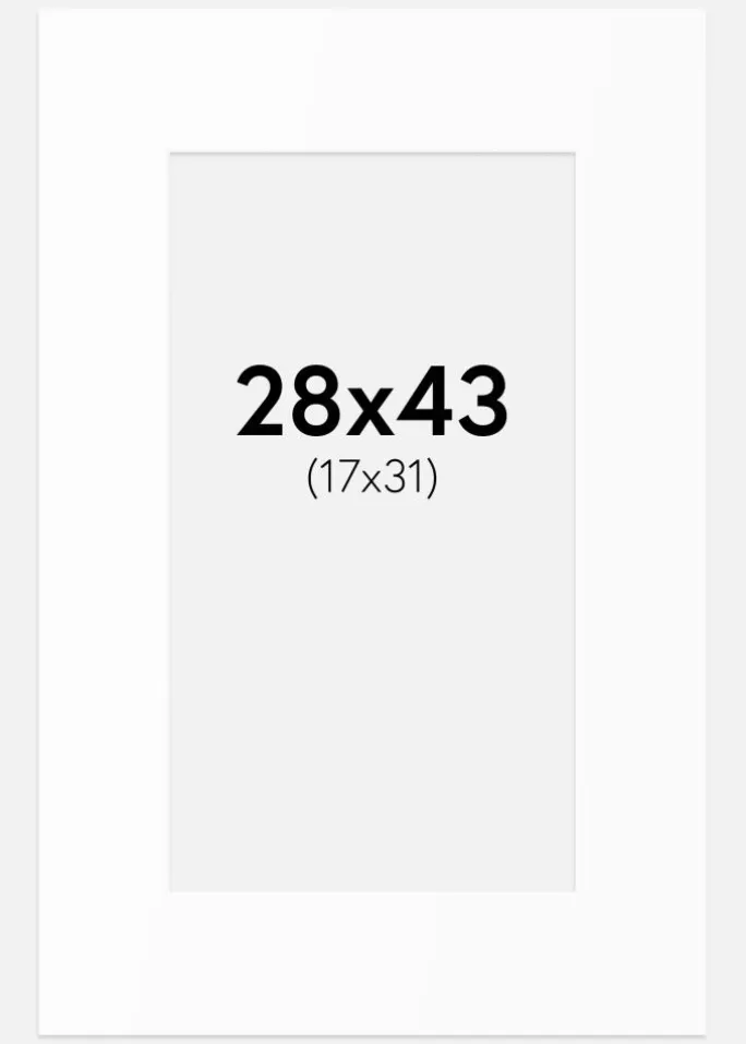 Denne elegante passepartout i hvid nuance er det perfekte valg for at fremhæve dine billeder og kunstværker. Med en indre størrelse, der passer til billeder i 18×32 cm, og et ydre mål på 28×43 cm, tilbyder den en smuk indramning, der giver dine motiver den plads, de fortjener.