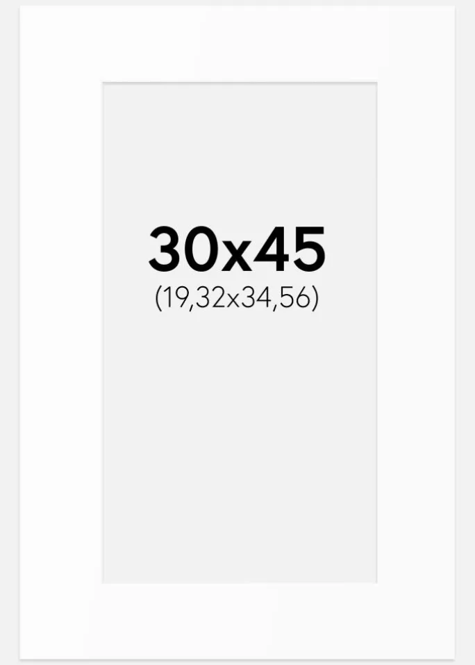 Denne elegante passepartout i hvid nuance er det perfekte valg for at fremhæve dine billeder og kunstværker. Med en indre størrelse på 20,32×35,56 cm (8×14 inches) passer den perfekt til at indramme dine favoritmotiver. Ydremålet på 30×45 cm gør den let at kombinere med forskellige rammer, hvilket giver dig fleksibilitet i din indretning.