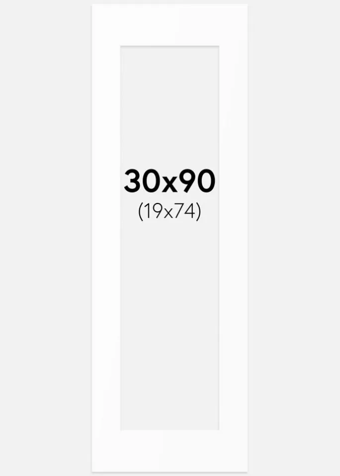 Denne elegante passepartout i hvid nuance er det perfekte valg for at fremhæve dine billeder og kunstværker. Med en skråskåret inderkant i samme hvide farve skabes en stilfuld indramning, der giver dybde og dimension til motivet. Passepartouten er designet til at passe billeder i størrelsen 20×75 cm, mens ydre målet er 30×90 cm, hvilket giver en smuk og afbalanceret præsentation.