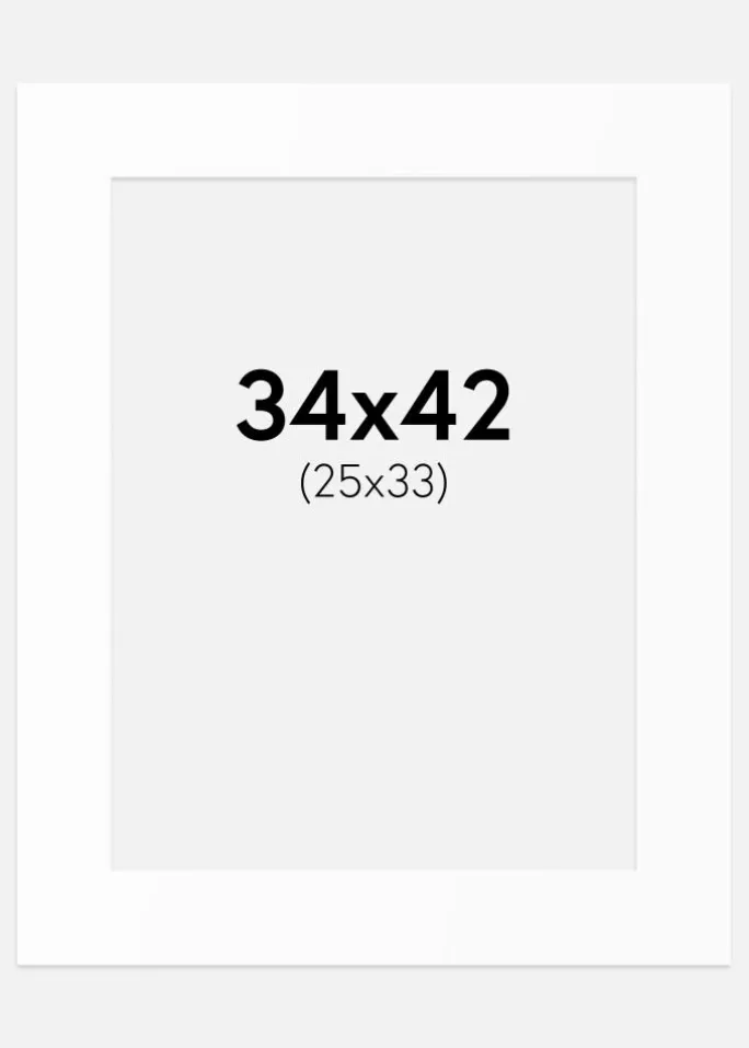 Denne elegante passepartout i hvid nuance er det perfekte valg for at fremhæve dine billeder og kunstværker. Med en indre størrelse på 26×34 cm passer den fremragende til at indramme dine favoritmotiver, mens ydermålet på 34×42 cm gør den let at kombinere med forskellige rammer.