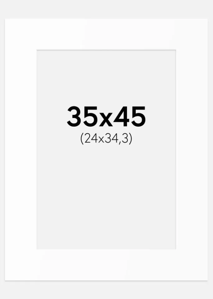 Denne elegante passepartout i hvid nuance er det perfekte valg for at fremhæve dine billeder og kunstværker. Med en skrå indre kant i samme hvide farve skabes en stilfuld indramning, der giver dybde og dimension til motivet. Passepartouten er designet til at passe billeder i størrelsen 25×35,3 cm (B4), mens de ydre mål er 35×45 cm, hvilket gør den ideel til en række forskellige rammer.