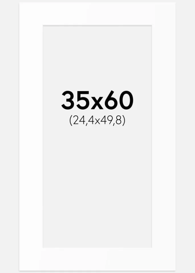 Denne elegante passepartout i hvid nuance er det perfekte valg for at fremhæve dine billeder og kunstværker. Med en indre åbning, der passer til billeder i størrelsen 25,4×50,8 cm (10×20 inches) og et ydre mål på 35×60 cm, tilbyder den en smuk indramning, der giver dine motiver den plads, de fortjener.