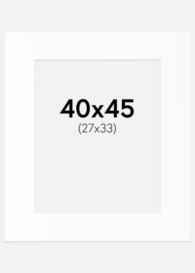 Denne elegante passepartout i hvid nuance er det perfekte valg til at fremhæve dine billeder og kunstværker. Med en indre størrelse, der passer til billeder på 28×34 cm og et ydre mål på 40×45 cm, tilbyder den en smuk indramning, der giver dine motiver den plads, de fortjener. Den skråtskårne indre kant i samme hvide farve skaber en subtil dybde og en stilfuld indramning, der virkelig fremhæver dit motiv.