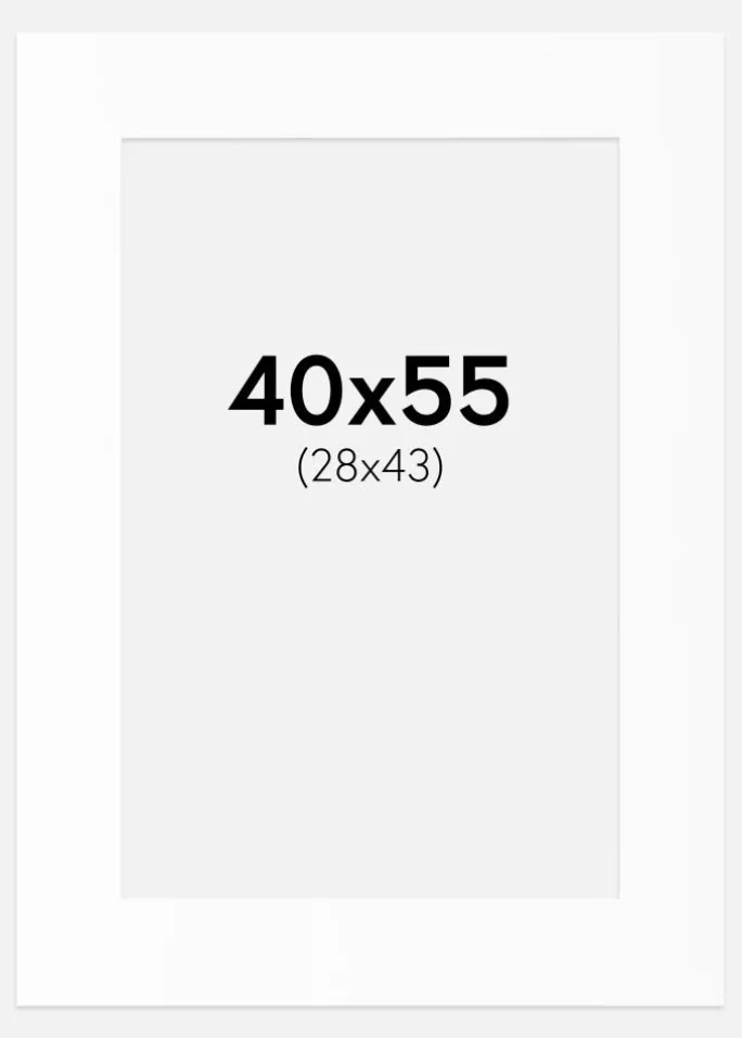 Denne elegante passepartout i hvid nuance er det perfekte valg til at fremhæve dine billeder og kunstværker. Med en skråtskåret indre kant i samme hvide farve skabes en stilfuld indramning, der giver dybde og dimension til motivet. Passepartouten er designet til at passe billeder i størrelsen 29×44 cm, mens ydermålet er 40×55 cm, hvilket gør den ideel til en række forskellige rammer.