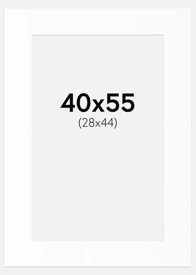 Denne elegante passepartout i hvid nuance er det perfekte valg for at fremhæve dine billeder og kunstværker. Med en indre størrelse, der passer til billeder i 29×45 cm og et ydre mål på 40×55 cm, tilbyder den en smuk indramning, der giver dine motiver den plads, de fortjener. Den skråskårne inderkant i samme hvide farve skaber en subtil dybde og en stilfuld indramning, der fremhæver hver detalje i dit motiv.