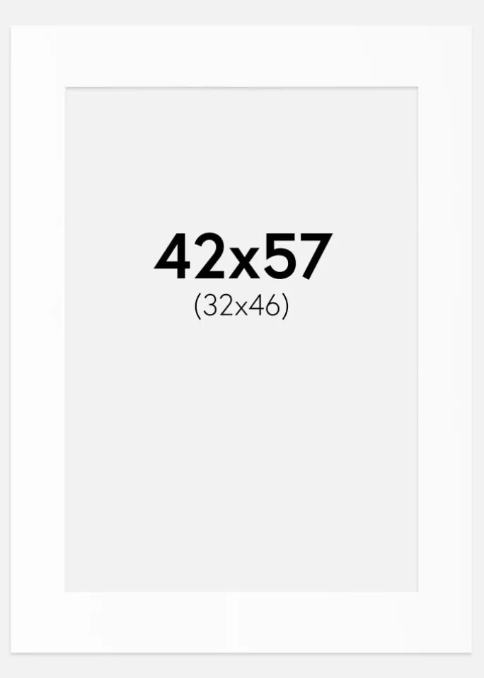 Denne elegante passepartout i hvid nuance er det perfekte valg til at fremhæve dine billeder og kunstværker. Med en indre størrelse, der passer til billeder i 33×47 cm, og et ydre mål på 42×57 cm, tilbyder den en smuk indramning, der giver dine motiver den plads, de fortjener. Den skråtskårne indre kant i samme hvide farve skaber en subtil dybde og en stilfuld indramning, der passer til både moderne og klassiske stilarter.