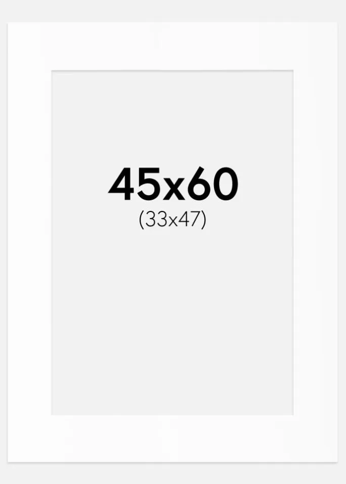 Denne elegante passepartout i hvid nuance er det perfekte valg for at fremhæve dine billeder og kunstværker. Med en skråtskåret indre kant i samme hvide farve skabes en stilfuld indramning, der giver dybde og dimension til dit motiv. Passepartouten er designet til at passe til billeder i størrelsen 34×48 cm, mens ydermålet er 45×60 cm, hvilket gør den ideel til en række forskellige rammer.