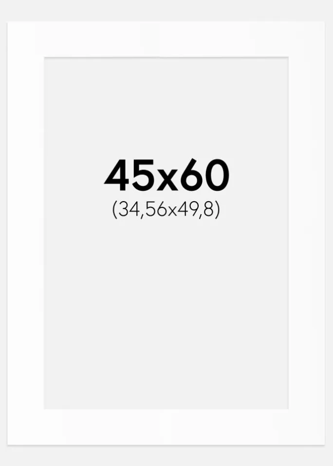 Denne elegante passepartout i hvid nuance er det perfekte valg til at fremhæve dine billeder og kunstværker. Med en størrelse, der passer til billeder i 35,56×50,8 cm (14×20 inches) og et ydre mål på 45×60 cm, tilbyder den en generøs indramning, der giver dine motiver den opmærksomhed, de fortjener.
