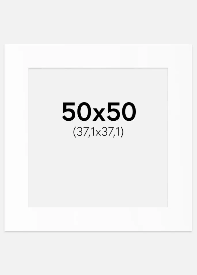 Denne elegante passepartout i hvid nuance er det perfekte valg for at fremhæve dine billeder og kunstværker. Med en indre størrelse på 38,1×38,1 cm (15×15 inches) passer den udmærket til kvadratiske motiver, mens ydersiden på 50×50 cm gør den let at kombinere med standardrammer.