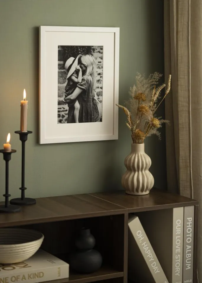 Ønsker du en mere luftig og eksklusiv indramning af dine billeder? Så kan du supplere din ramme med en passepartout! Denne variant har en hvid nuance med hvid, skråtskåren kant nærmest motivet, hvilket gør at den passer godt til sort-hvide såvel som farvestrålende motiver.