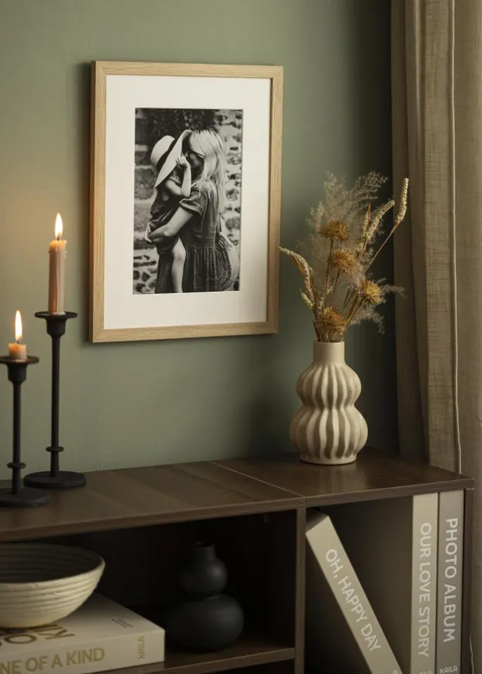 Fremstillet af syrefri karton, sikrer denne passepartout, at dine fotografier og kunstværker beskyttes over tid uden at gulne. Det syrefrie og PH-neutrale materiale af høj kvalitet forhindrer, at dine billeder falmer, hvilket giver dem en lang holdbarhed. Den fine, strukturerede overflade bidrager til en sofistikeret og tidløs følelse, hvilket gør passepartouten ideel til både moderne og klassiske indramninger.