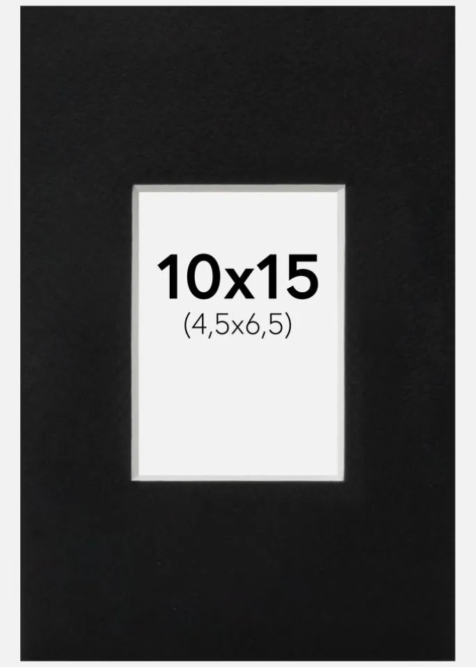 Denne elegante passepartout i sort er det perfekte valg for at give dine billeder en stilfuld indramning. Med en skråt skåret indre kant og en hvid kerne skabes en subtil kontrasteffekt, der giver dybde og elegance til dine fotografier eller kunstværker. Passepartouten er designet til at passe billeder i størrelsen 5×7 cm, mens ydermålet er 10×15 cm, hvilket gør den ideel til både små portrætter og kunstværker.