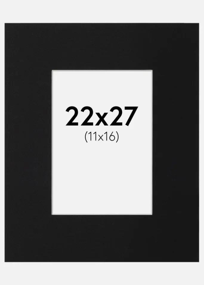 Denne elegante passepartout i sort er det perfekte valg til at give dine billeder en stilfuld indramning. Med et yttermål på 22×27 cm passer den til billeder i størrelsen 12×17 cm, hvilket gør den ideel til portrætter, kunstværker eller fotografier, som du vil fremhæve på en smagfuld måde.