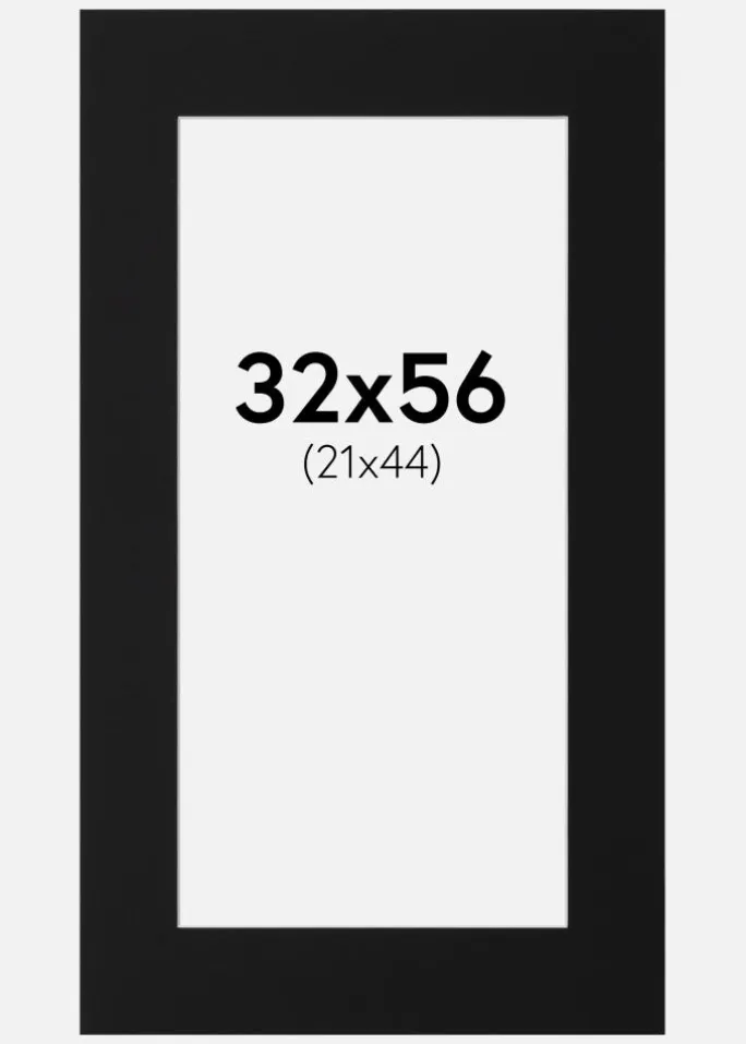 Denne elegante passepartout i sort er det perfekte valg for at give dine billeder og kunstværker en stilfuld indramning. Med en skråtskåret inderkant og en hvid kerne skabes en subtil kontrasteffekt, der giver dybde og elegance til dit motiv. Passepartouten er designet til at passe billeder i størrelsen 22×45 cm, mens ydermålet er 32×56 cm, hvilket gør den ideel til både moderne og klassiske indramninger.