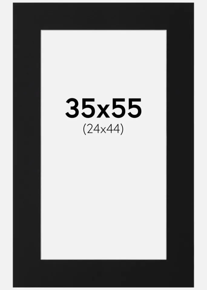 Denne elegante passepartout i sort er det perfekte valg for at give dine billeder og kunstværker en stilfuld indramning. Med en skråskåret inderkant og en hvid kerne skabes en subtil kontrasteffekt, der giver dybde og elegance til dine motiver. Passepartouten er designet til at passe billeder i størrelsen 25×45 cm, mens ydre målet er 35×55 cm, hvilket gør den ideel til både moderne og klassiske indramninger.