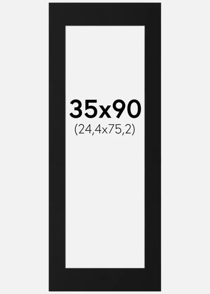 Ydermålet på passepartouten er 35×90 cm, hvilket giver en generøs ramme omkring dine billeder og fremhæver dem på en smagfuld måde. Den matte sorte overflade giver et professionelt udseende, der passer til både moderne og klassiske indramninger. Uanset om du vil fremhæve et kunstværk eller et fotografi, vil denne passepartout give dit motiv den opmærksomhed, det fortjener.