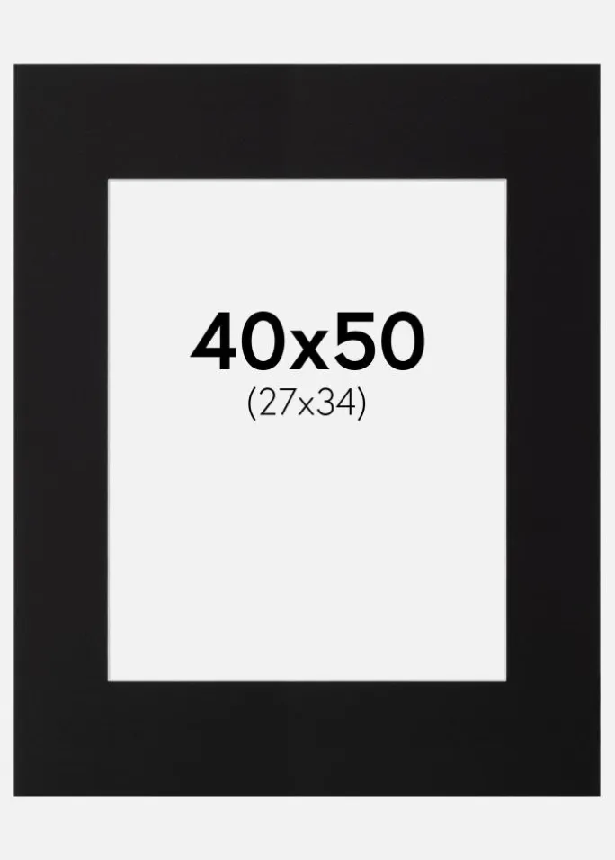 Dette elegante passepartout i sort er det perfekte valg for at give dine billeder en stilfuld indramning. Med en skrå indre kant og en hvid kerne skabes en subtil kontrasteffekt, der giver dybde og elegance til dit motiv. Passepartoutet er designet til at passe billeder i størrelsen 28×35 cm, mens ydermålet er 40×50 cm, hvilket gør det ideelt til både moderne og klassiske indramninger.