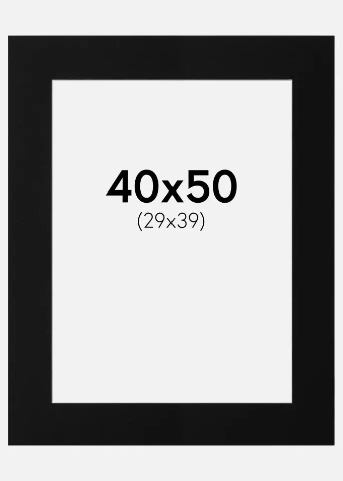 Denne elegante passepartout i sort er det perfekte valg for at give dine billeder en professionel og stilren indramning. Med udvendige mål på 40×50 cm passer den til billeder i størrelsen 30×40 cm, hvilket gør den ideel til at fremhæve portrætter, kunstværker eller fotografier på en smagfuld måde.