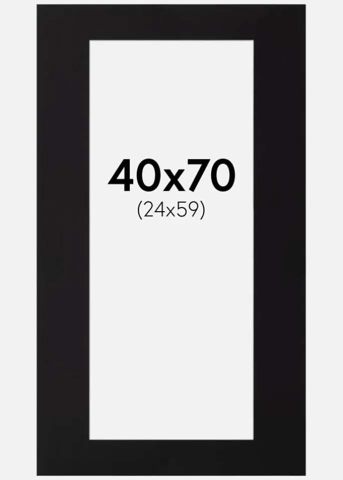Denne elegante passepartout i sort er det perfekte valg for at give dine billeder en professionel og stilren indramning. Med en skråtskåret inderkant og en hvid kerne skabes en subtil kontrasteffekt, der fremhæver motivet på en smagfuld måde. Passepartouten er designet til at passe billeder i størrelsen 25×60 cm, mens ydermålet er 40×70 cm, hvilket giver en smuk indramning med en bred kant rundt om dit kunstværk eller fotografi.
