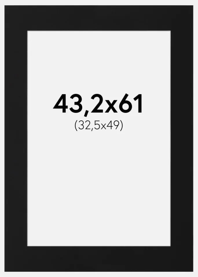 Denne elegante passepartout i sort er det perfekte valg for at give dine billeder og kunstværker en stilfuld indramning. Med en skråt skåret inderkant og en hvid kerne skabes en subtil kontrasteffekt, der giver dybde og elegance til dit motiv. Passepartouten er designet til at passe billeder i størrelsen 33,5×50 cm, mens ydre dimensionen er 43,2×61 cm, hvilket gør den ideel til både moderne og klassiske indramninger.
