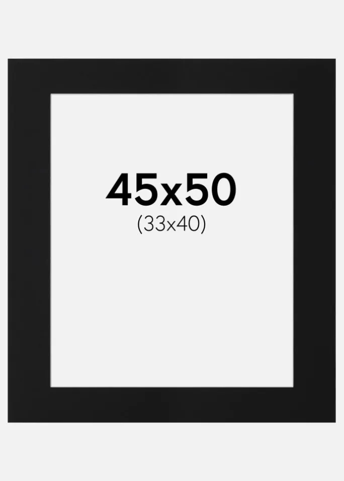 Denne elegante passepartout i sort er det perfekte valg for at give dine billeder og kunstværker en stilfuld indramning. Med en skråtskåret inderkant og en hvid kerne skabes en subtil kontrasteffekt, der giver dybde og elegance til dit motiv. Passepartouten er designet til at passe billeder i størrelsen 34×41 cm, mens ydermålet er 45×50 cm, hvilket gør den ideel til både moderne og klassiske indramninger.