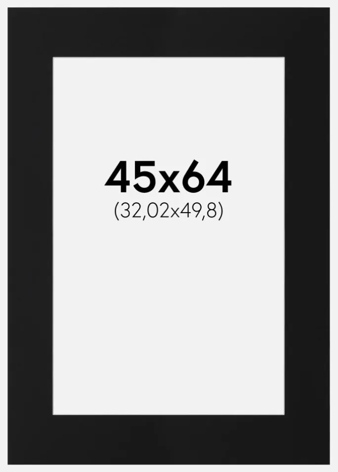 Ydermålet på passepartouten er 45×64 cm, hvilket giver en generøs ramme omkring dit motiv og fremhæver det på en smagfuld måde. Den matte sorte overflade giver et professionelt udseende, der passer til både moderne og klassiske indramninger. Uanset om du vil vise et kunstværk eller et fotografi, vil denne passepartout fremhæve dit motiv på bedste vis.