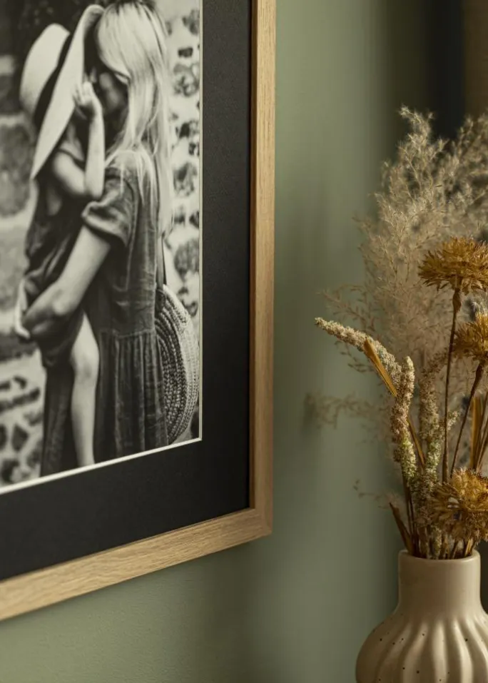 Denne elegante passepartout i sort er det perfekte valg for at give dine billeder og kunstværker en stilfuld indramning. Med en skråtskåret inderkant og en hvid kerne skabes en subtil kontrasteffekt, der giver dybde og elegance til dit motiv. Passepartouten er designet til at passe billeder i størrelsen 33×56 cm, mens ydermålet er 50×70 cm, hvilket gør den ideel til både moderne og klassiske indramninger.