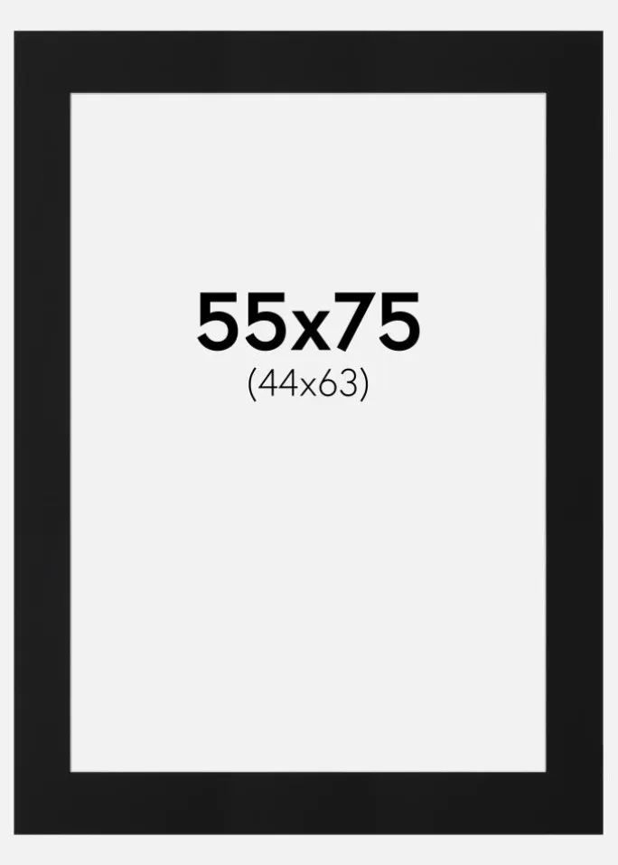 Denne elegante passepartout i sort er det perfekte valg for at give dine billeder og kunstværker en stilfuld indramning. Med en skråskåret inderkant og en hvid kerne skabes en subtil kontrasteffekt, der giver dybde og elegance til dit motiv. Passepartouten er designet til at passe billeder i størrelsen 45×64 cm, mens ydermålet er 55×75 cm, hvilket gør den ideel til både moderne og klassiske indramninger.