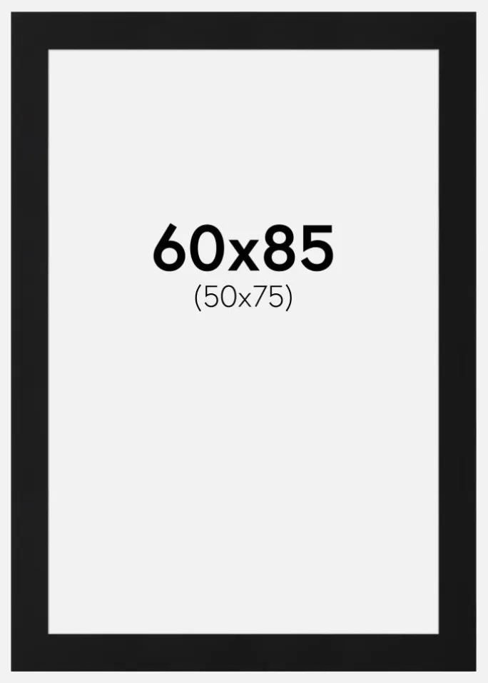 Denne elegante passepartout i sort er det perfekte valg for at give dine billeder og kunstværker en stilfuld indramning. Med en skråtskåret inderkant og en hvid kerne skabes en subtil kontrasteffekt, der giver dybde og elegance til dit motiv. Passepartouten er designet til at passe til billeder i størrelsen 51×76 cm, mens ydre målet er 60×85 cm, hvilket gør den ideel til både moderne og klassiske indramninger.