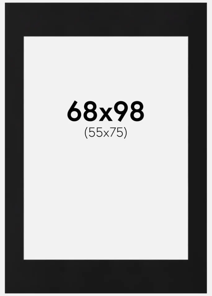 Denne elegante passepartout i sort er det perfekte valg for at give dine billeder og kunstværker en stilfuld indramning. Med en skråtskåret inderkant og en hvid kerne skabes en subtil kontrasteffekt, der giver dybde og elegance til dit motiv. Passepartouten er designet til at passe billeder i størrelsen 56×76 cm, mens ydre målet er 68×98 cm, hvilket gør den ideel til både moderne og klassiske indramninger.