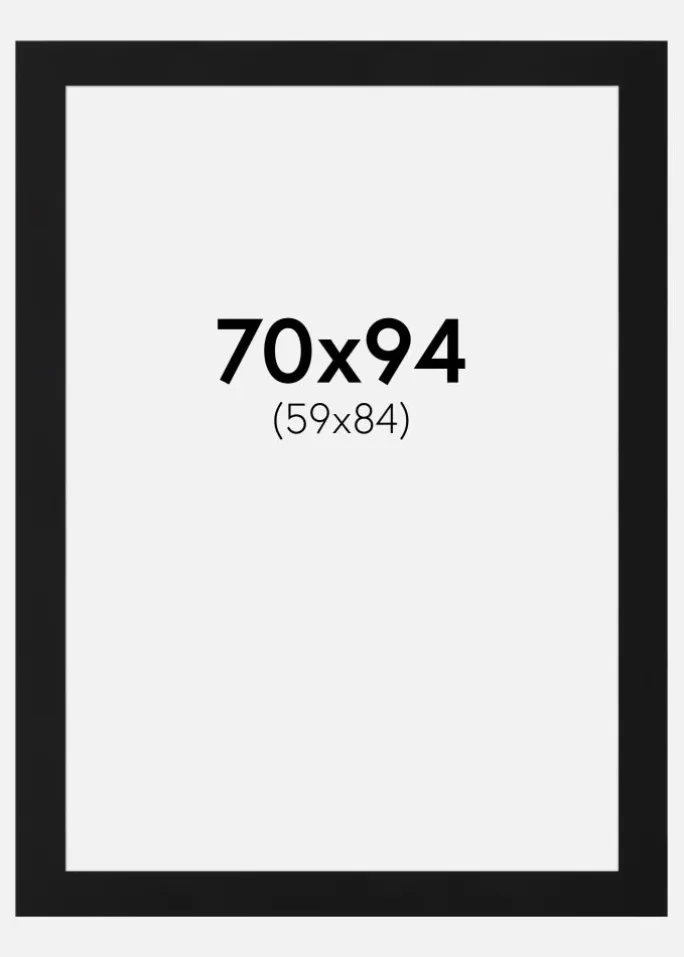 Denne elegante passepartout i sort er det perfekte valg for at give dine billeder og kunstværker en stilfuld indramning. Med en skråtskåret inderside og en hvid kerne skabes en subtil kontrasteffekt, der giver dybde og elegance til dit motiv. Passepartouten er designet til at passe billeder i størrelsen 60×85 cm, mens ydermålet er 70×94 cm, hvilket gør den ideel til både moderne og klassiske indramninger.