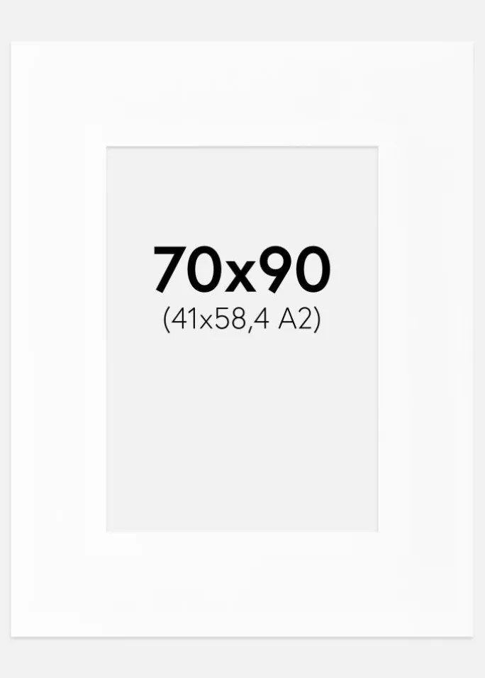 Denne XXL-variant af passepartout har ekstra brede kanter, hvilket giver en følelse af rum og får dit motiv til virkelig at stå i fokus. Den er designet til at passe billeder i størrelsen 42×59,4 cm (A2) og har et ydre mål på 70×90 cm. Dette gør den ideel til større værker, der kræver en generøs indramning.