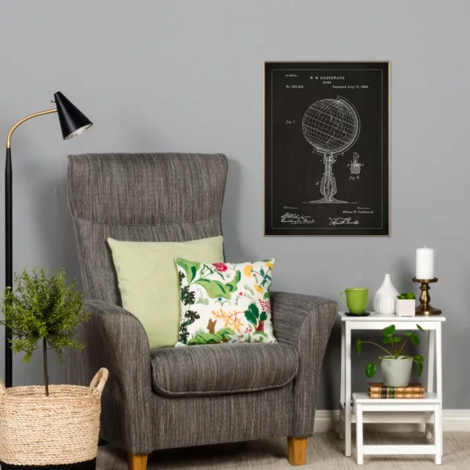 Denne patentplakat fremstiller W. M. Goldthwaite’s design af en klassisk globus, en detaljeret skabelse, der blev foreviget gennem patentnummer 386,399 den 17. juli 1888. Plakaten fanger opfindelsens elegance og funktionelle skønhed og illustrerer verden i to dimensioner på en sådan måde, at det inspirerer til opdagelser og udforskninger. Dens præcise linjer og klarhed i design gør den til et fremragende pædagogisk værktøj og en ønskværdig indretningsdetalje for alle, der værdsætter geografi og verdenshistorie.