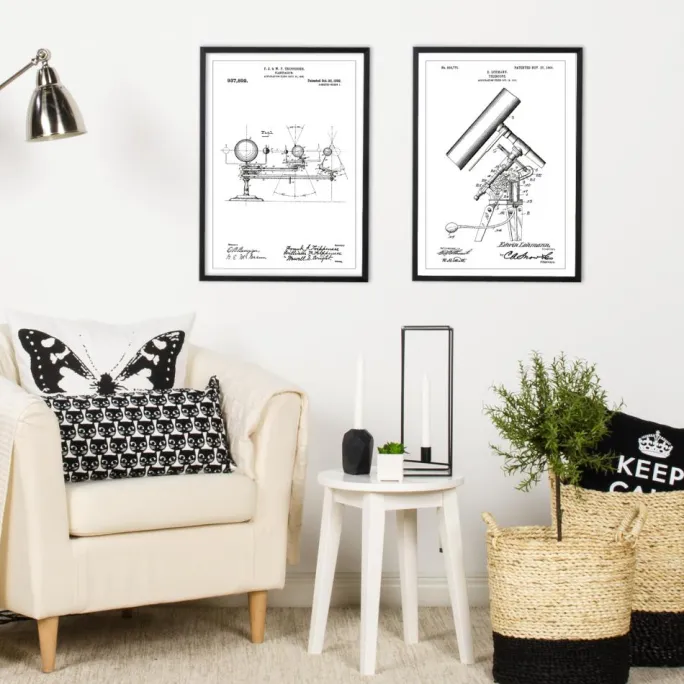 Denne patentplakat er ikke bare en dekorativ detalje men også et historisk dokument, der fanger en tid, hvor teknologiske fremskridt formede vores forståelse af universet. Underskriften fra opfinderen og vidnerne tilføjer et autentisk præg, der formidler opfindelsens ægthed og historiske betydning. Den er en ideel gave til nysgerrige sjæle, en inspirerende tilføjelse til et videnskabsklasserum eller en stilfuld indretningskomponent i et moderne hjem eller kontor.