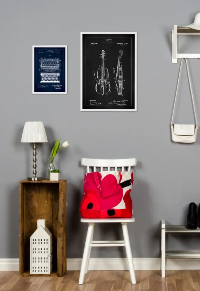 Perfekt for musikere, musiklærere eller nogen der værdsætter musikens og håndværkets skønhed, denne patentplakat er en hyldest til både musikalsk og konstruktionsmæssig finesse. Uanset om den placeres i et musikrum, et studie eller som en del af en samling af patenttegninger, er dette billede sikker på at inspirere og imponere alle der ser det.