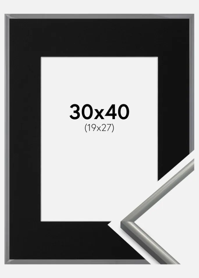Ramme New Lifestyle Lysegrå 30×40 cm – Passepartout Sort 20×28 cm