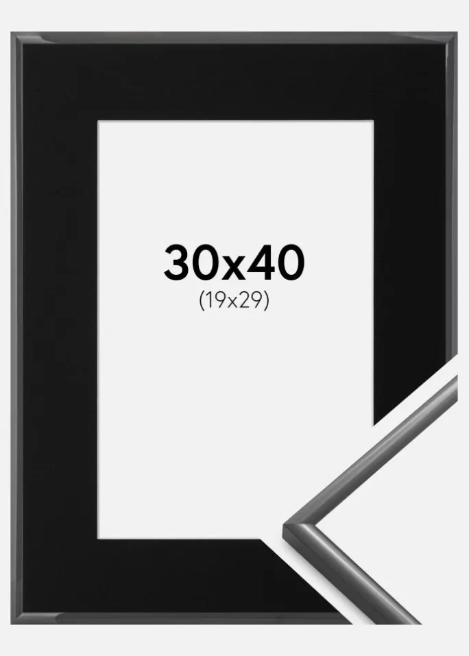 Ramme New Lifestyle Mørkegrå 30×40 cm – Passepartout Sort 20×30 cm