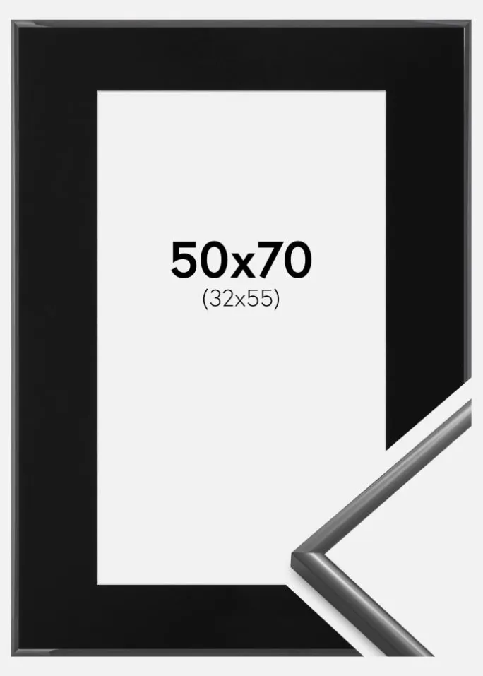 Ramme New Lifestyle Mørkegrå 50×70 cm – Passepartout Sort 33×56 cm