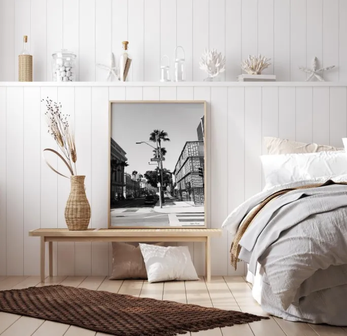 Her møder vi et af Saphira Consilios mange dagligdags bymotiver med palmer og parkerede biler i behagelig gråskala. En dejlig hverdagslig plakat i sort og hvid, som med fordel kan kombineres med noget fra vores øvrige sortiment af Saphira Consilio.