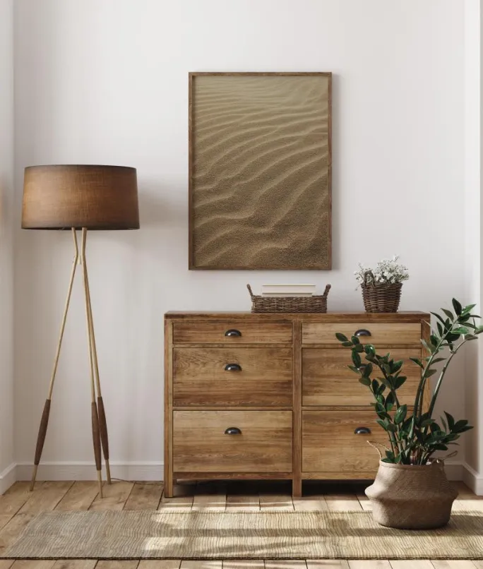 En simpel plakat med krusninger i sandet. Sandet fortsætter og fortsætter og fylder hele billedet. Tæt på kan sandkornene ses i de vindskabte vandløb i ørkenen. Forundres over naturens vidundere i dette fantastiske billede.