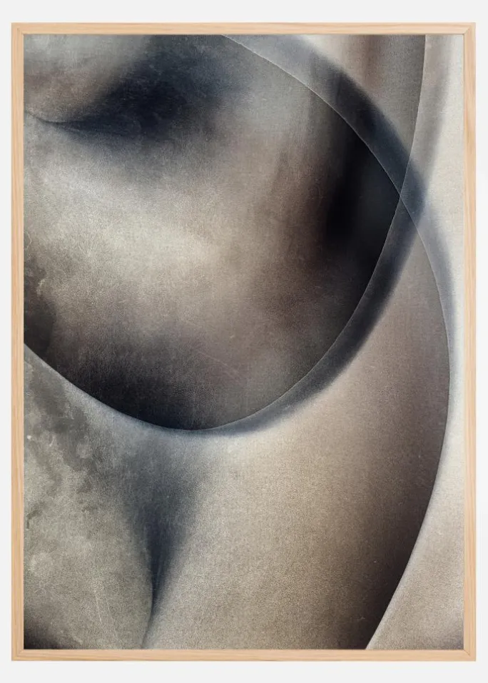 En livstegningsplakat af et nærbillede af en kvindes hofter og torso. Dette fantastiske abstrakte billede har bløde vaske af blå og lilla farver for at skabe kroppens linjer. Yderligere stærkere overlappende former får områder til at skille sig ud. Nyd dette abstrakte billede med kropsformer, når det hænges op i hjemmet.