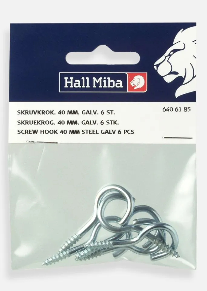 Skruvkrog 40 mm Stål Galvaniseret er en holdbar krog perfekt til ophængning af rammer, dekorationer og andre genstande. Fremstillet i galvaniseret stål for ekstra rustbeskyttelse og stabilitet. Leveres i en 6-pak.