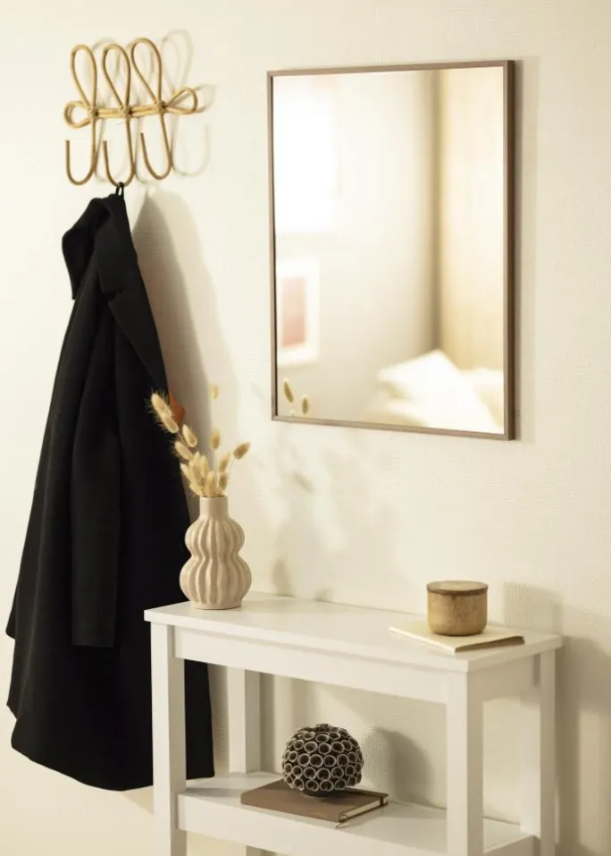 - Spejl med træfarvet ramme