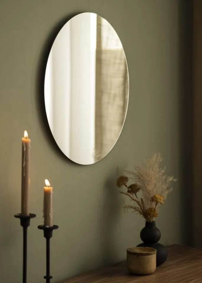Denne spejl er designet til at hænges lodret, hvilket gør det til et praktisk valg til gangen, soveværelset eller badeværelset. Den runde form bidrager til en blød og indbydende følelse, hvilket gør at spejlet harmonisk smelter ind i omgivelserne. Det er ikke kun en funktionel genstand, men også et dekorativt element, der fuldender din indretning.