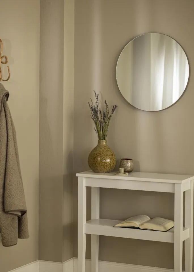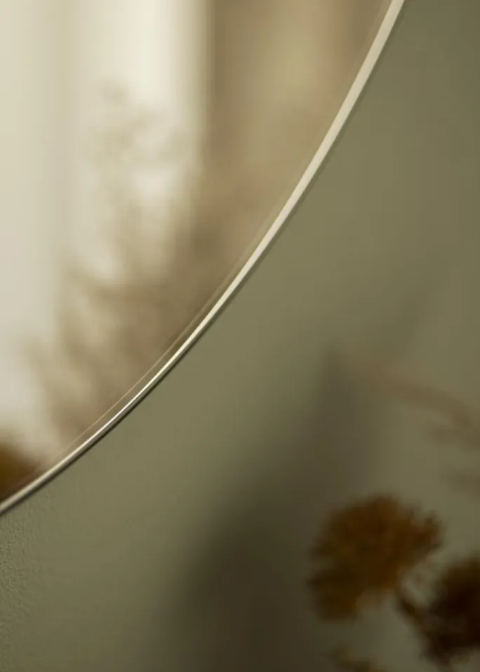 Med sin minimalistiske æstetik er denne spejl en diskret, men alligevel påtagelig opgradering af dit hjem. Den runde form skaber en fredelig og afbalanceret atmosfære, hvilket gør at spejlet passer lige så godt i det moderne hjem som i den mere traditionelle indretning. Lad dette spejl blive en del af din daglige rutine og give dit rum en følelse af åbenhed og lys.