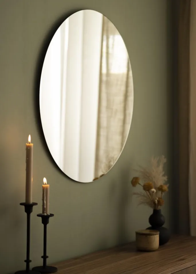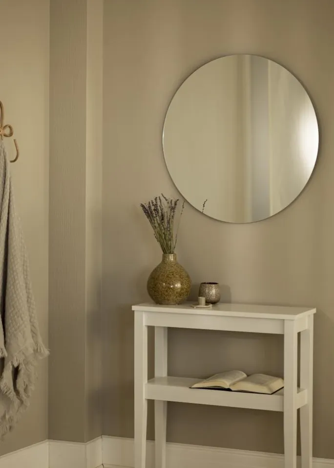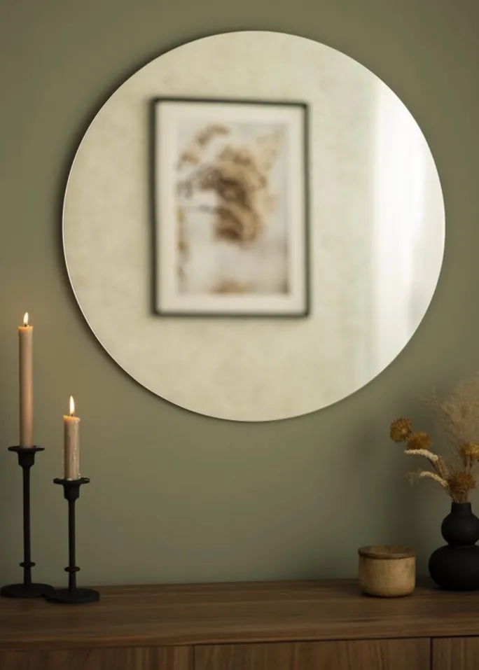 Oplev elegance og enkelhed med vores strømlinede runde spejl, perfekt til at tilføje et moderne touch til dit hjem. Med en diameter på 70 cm giver dette spejl en generøs reflekterende overflade, der både er praktisk og dekorativt. Dets runde form bidrager til en blød og harmonisk fornemmelse i rummet, hvilket gør det til det ideelle valg for alle, der søger en minimalistisk design.