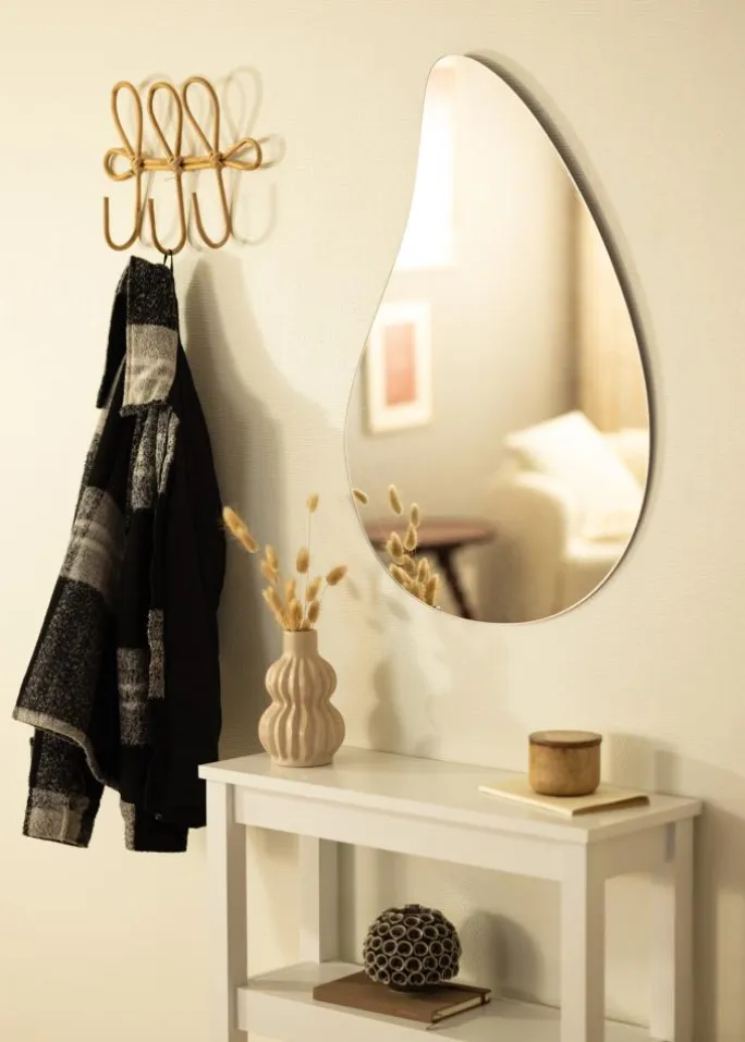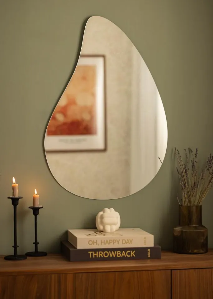 Dette supertynde spejl fra danske Incado måler 60×41 cm. Det dråbeformede spejl giver et coolt udtryk i rummet det pryder, og det passer til alle som er interesserede i indretning og modebevidste.