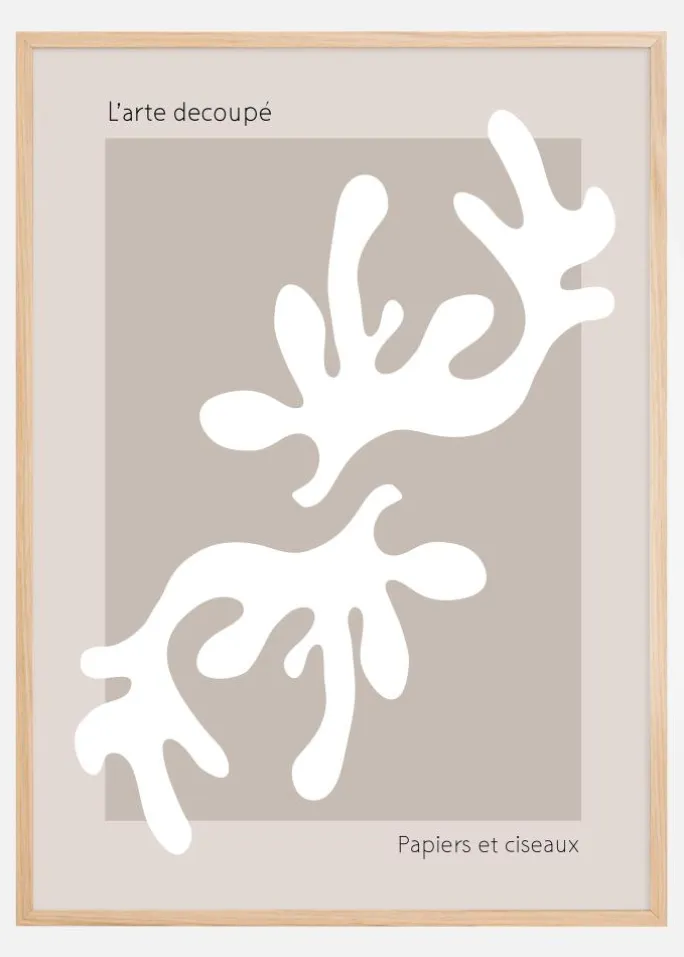 Giv dit rum et friskt og nutidigt udseende med denne stilfulde og moderne plakat fra vores kollektion. ‘L’arte découpé’, et kunstværk der fanger øjet, anvender sig af en monokrom palet i nuancer af gråt og hvidt for at fremstille abstrakte former, der fremkalder tanker om havliv og natur. Dette print er en hyldest til skønheden i det enkle, med dets rene linjer og bløde konturer, der skaber en harmonisk komposition. Det er en ideel indretningsdetalje for minimalistisk indrettede hjem eller kontorer, der søger et sofistikeret og diskret kunstnerisk udtryk.