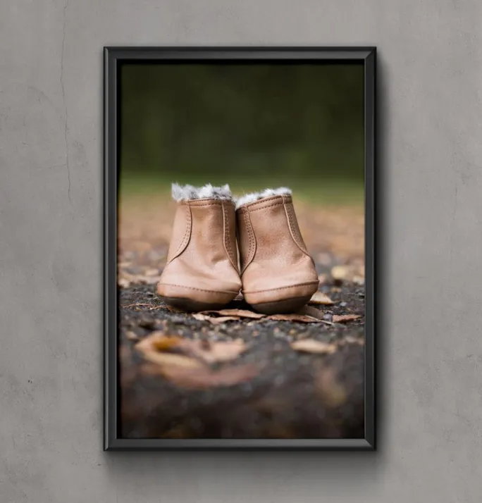 En sjov plakat af et par sko, der bare sidder midt på vejen. Bliv inspireret til at rejse og tag disse behagelige pelsforede støvler på, da verden venter på dig. Eller bliv bare inspireret til at gå en tur udenfor, når du hænger den op i nærheden af din hoveddør.